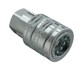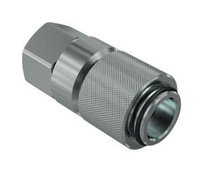 Standard female couplings with safety sleeve, poppet valve